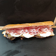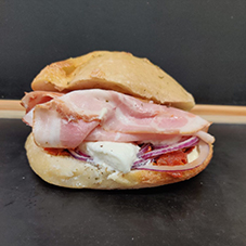 Baguette - Coppa I.G.P - Mozzarella di Bufala DOP - Mayonnaise - Aubergines grillées - Olives noires -