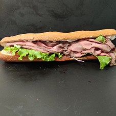 Baguette - Roastbeef - Chèvre frais - Salade batavia - Tomates fraîches - Oignons - Aubergines grillées - Tartare