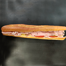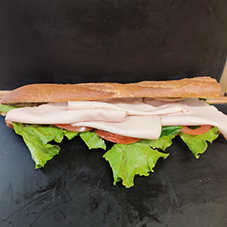 Baguette - Volaille (dinde) - Taleggio DOP - Salade batavia - Tomates fraîches - Basilic - Poivre -