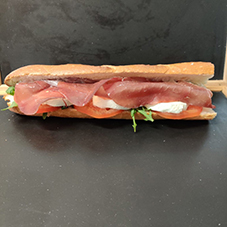 Baguette XL Jambon cru de Parme DOP - Mozzarella di Bufala DOP - Salade rucola - Tomates fraîches - Poivre - Huile d’olive extra vierge